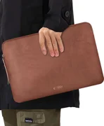 A borító belseje puha plüssel van ellátva, amely finoman körbeöleli a laptopot, megvédve azt a karcolásoktól és ütésektől. Az elegáns ökobőrből készült külső réteg tartósságot és védelmet biztosít a nedvesség, az eső és a véletlenül kiömlő folyadékok ellen.