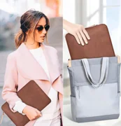 A hüvelyes (felcsúsztatható) modell minimalista kialakítású, fogantyú nélküli, így ideális táskában vagy hátizsákban való hordozásra. Könnyű kialakításának köszönhetően minimális helyet foglal el anélkül, hogy megterhelné a csomagját. Az elegáns, semleges színű, elegáns ökobőrből készült időtlen, stílusos kialakításnak köszönhetően a sleeve bármilyen üzleti vagy alkalmi stílushoz illik.