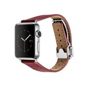 Luxusní kožený řemínek v temně rudé barvě s adaptéry z nerezové oceli pro Apple Watch velikosti 42 mm. Z naprosto rovného střihu a pečlivě vybírané kůže doslova vyzařuje nadčasová elegance, zatímco výrazné obvodové prošívání barevně ladící nití dodává řemínku šmrnc moderní klasiky. Zdvojená vrstva překvapivě lehké kůže zaručuje, že si řemínek dlouhodobě uchová pevný tvar a masivní vzhled. Vrcholem luxusu je stylová překlápěcí spona, kterou ukotvíte v dírkách řemínku podle potřeby. Tento způsob zapínání je rychlý, pohodlný a také mnohem šetrnější k samotnému řemínku, jehož volný konec je důmyslně uschován a nenarušuje estetickou harmonii s pouzdrem hodinek. Barva spony i adaptérů z kvalitní nerezové oceli koresponduje s odstínem Apple Watch, u adaptérů věnoval výrobce obrovskou pozornost také tomu, aby bylo stejně jednoduché řemínek vyměnit jako nosit. Vlastnosti: Luxusní výměnný řemínek pro Apple Watch velikosti 42 mm Design ve stylu moderní klasiky Vysoce kvalitní materiály a precizní zpracování Rovný střih a obvodové obšití výraznou nití Zdvojená vrstva vyběrové pravé kůže Překlápěcí spona s nastavitelnou pozicí na řemínku Spona a adaptéry z kvalitní nerezové oceli v odstínu Apple Watch Vhodný pro Apple Watch z nerezové oceli i Apple Watch Sport ze stříbrného hliníku Délka řemínku: 136 až 188 mm Recenze: Ondra's IHelp Jablíčkář.cz Motto americké společnosti Monowear, která se soustředí čistě na výrobu řemínků a jiného příslušenství pro Apple Watch, zní: Správný řemínek pro správnou příležitost a místo. A také za správnou cenu. Její nabídka proto zahrnuje ohromující kombinace materiálů a barev pro každou velikost i odstín Apple Watch. Ale ať už se jedná o luxusní kůži s motýlkovou sponou nebo nylon s kovovými přezkami, vždy se můžete spolehnout na vysokou kvalitu, užitnou hodnotu a originální design, který bude vždy perfektně ladit s Apple Watch. Monowear je aktuálně druhým největším výrobcem řemínků pro Apple Watch, hned po samotné společnosti Apple.