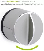 You can open from the outside with a classic key. This is especially in case your phone battery is dead. And if you want to open or close the door from the inside, just move the Danalock V3 handle slightly in a given direction. The Twist-Assist feature completes the operation for you, so you're sure it all locks in place perfectly.
